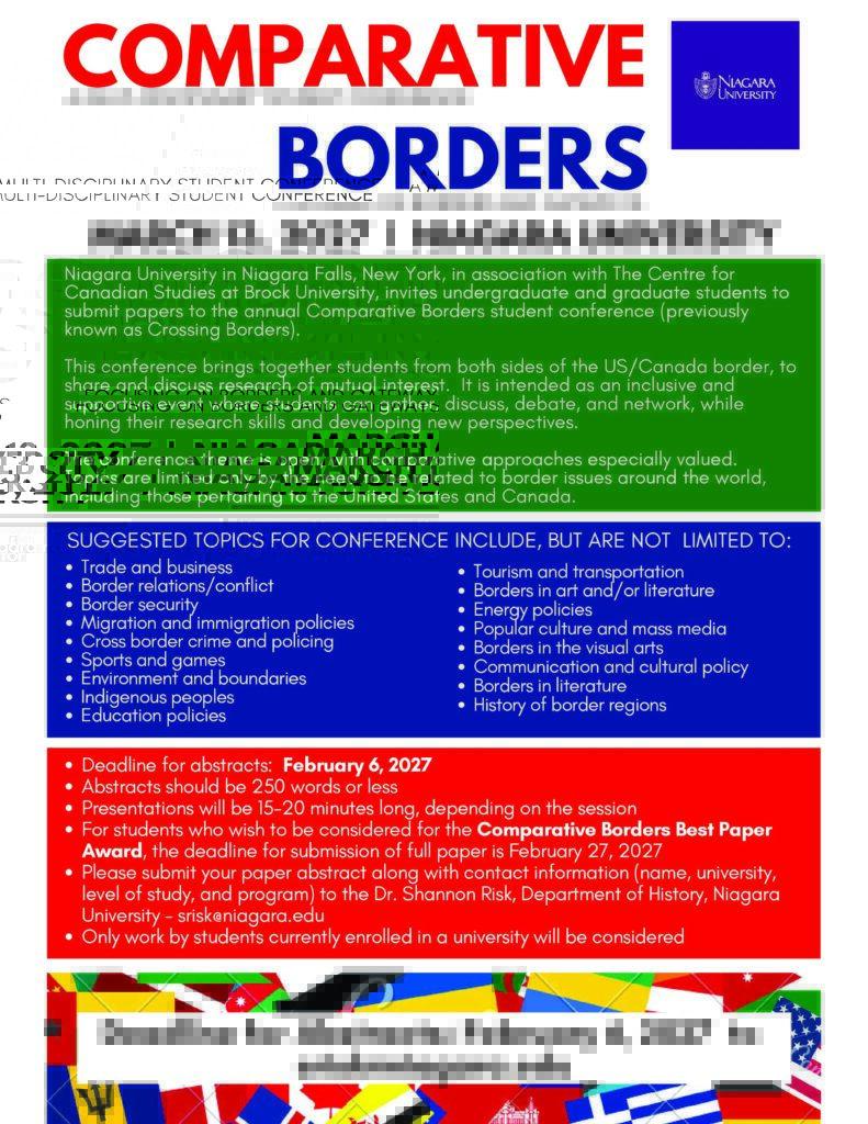 Five Niagara University students presented their research at the Comparative Borders Conference at Brock University, on Saturday, March 28, 2026. The conference, which expanded its reach beyond the Canada-U.S. relationship this year, focuses on borders and borderlands issues in a variety of academic fields and is open to undergraduate and graduate students.